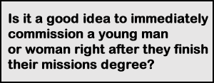 Is it a good idea to immediately commission a young man or woman right after they finish their missions degree? They may be convinced that God has called. But, are they ready for the hardships of missionary life; the painful and prolonged separation from friends and family, the difficulties of harsh climates, the certainty that there will be governmental and religious enemies of the Gospel, the possibility of open demonic interference, the criticism of or by fellow Christian coworkers, the rejection by national unbelievers (and even national believers), the hazard of potential violence, the busyness of life back home leading to a sense that no one at home cares (out of sight, …), etc. What is required to give experience and backbone for the challenges ahead? How about some real life experience in a local church setting among the faithful (and sometimes hard to deal with) members of one’s potential sending church.