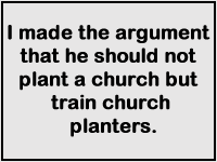 In the ministry I am in right now, I am helping a group of churches to send a national church planter across a border into a country we cannot enter. They had a portion of his support from their churches and asked my ministry to supply the rest from American churches. They planned to send him to plant a church. “You’re singing my song”, I said. Then, I made the argument that he should not plant a church but train church planters. In the church planter’s report six months later, he reported that he was training 12 church planters. He has now 4 preaching points and sends 3 men to each site. One will eventually take over and the others will move on. Does that sound like multiplication?
