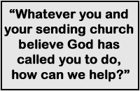 Is there a process for accountability to the Sending Church? Is there a plan for visits from Local Church leadership (Pastor and/or Missions Leader)? Visits should be purposeful; not just to come, but to bless and perceive. Do you need anything, ANYTHING?